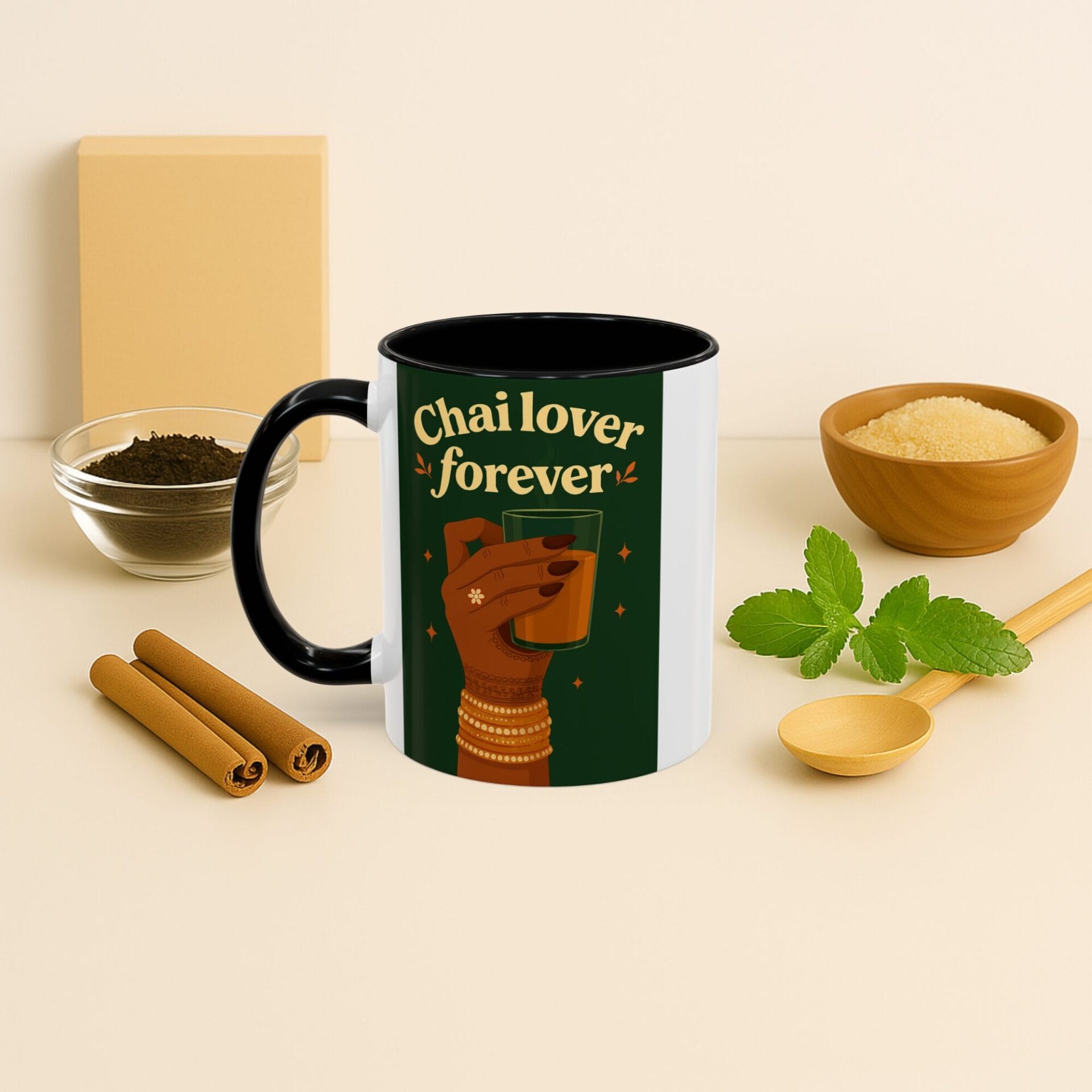 This is a mug that understands your relationship with chai—that it’s not casual, it’s not temporary, it’s forever. The beautiful hands adorned with bangles honor chai culture and tradition, while the accent design ensures you’re celebrating that commitment with style and personality.
